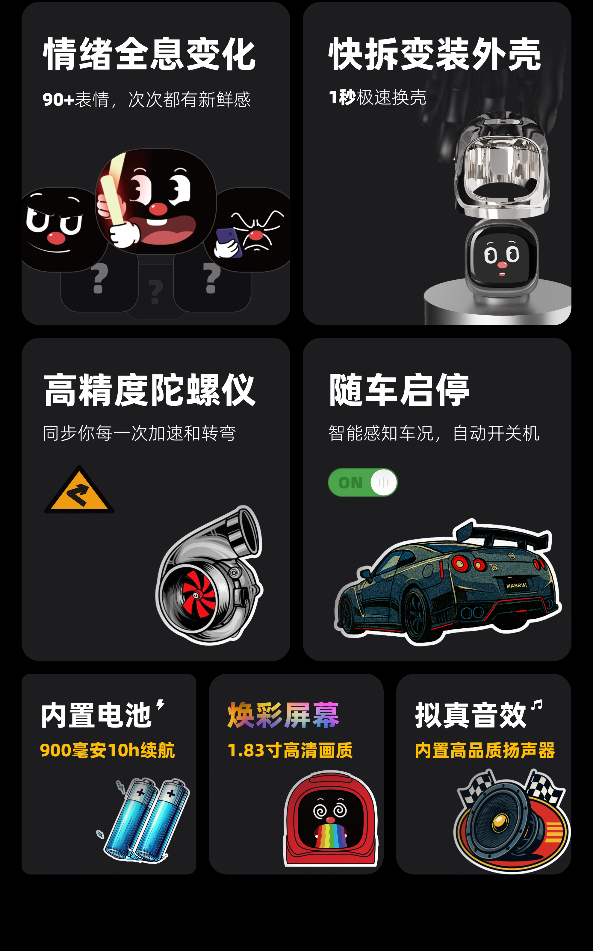 MANGOGO送男友礼物车载陪伴机器人磁吸陪伴电子宠物汽车内饰用品