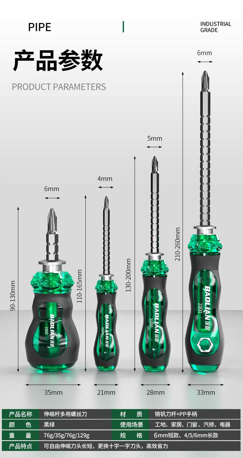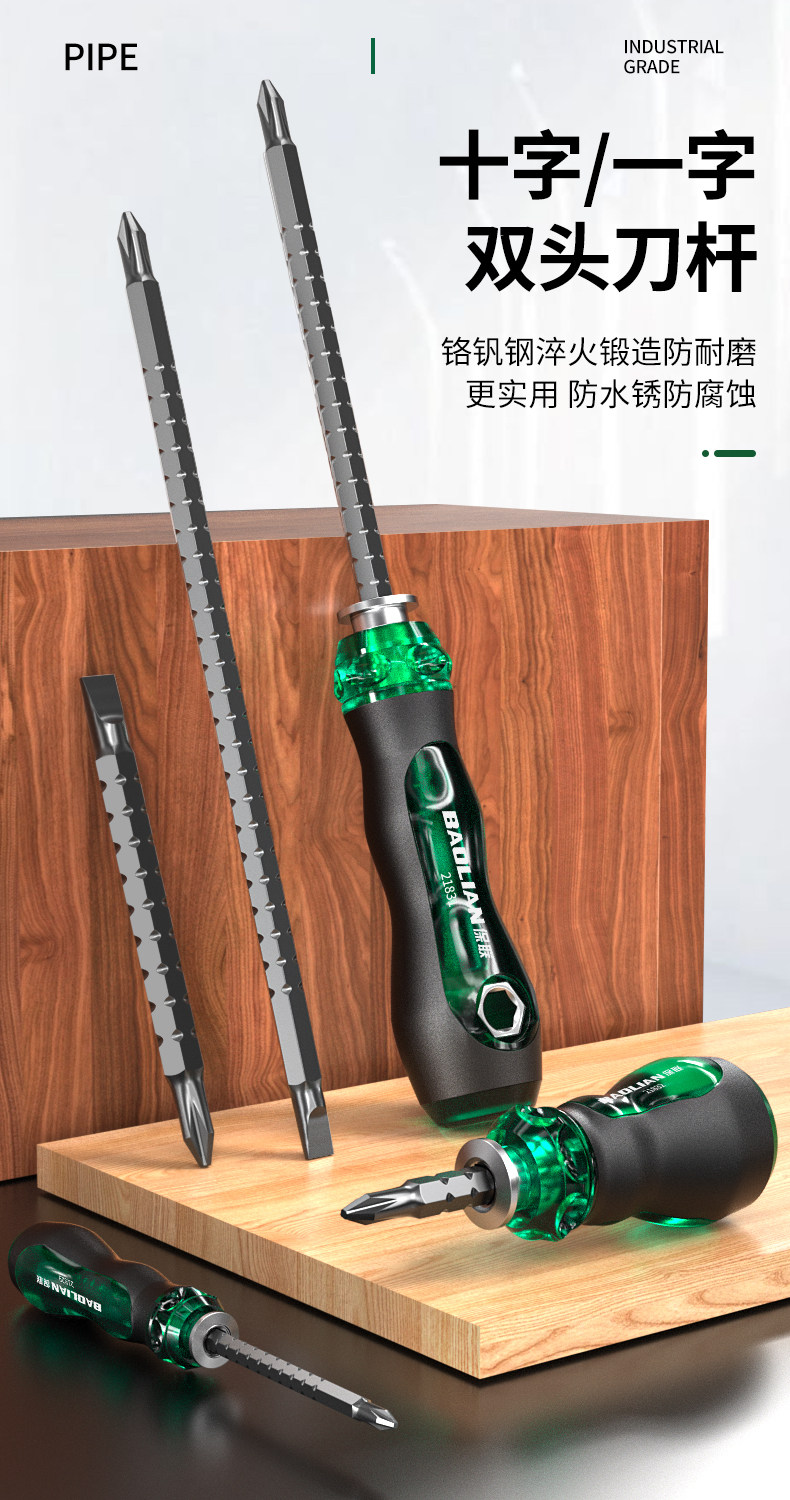 保联螺丝刀伸缩两用一字十字多功能螺丝批套装高硬度强磁起子改锥