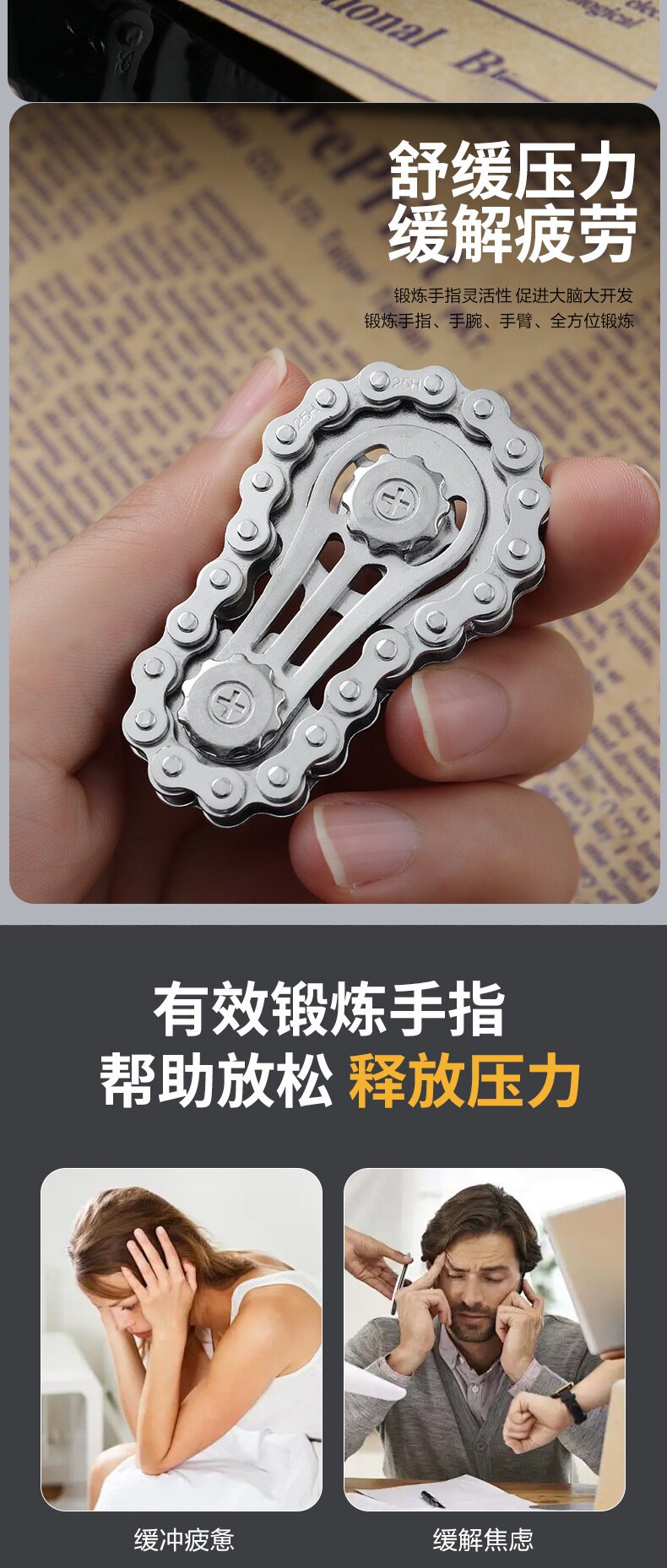 无聊好玩车链指尖陀螺齿轮玩具链成人手指链焦虑缓解链条金属解压