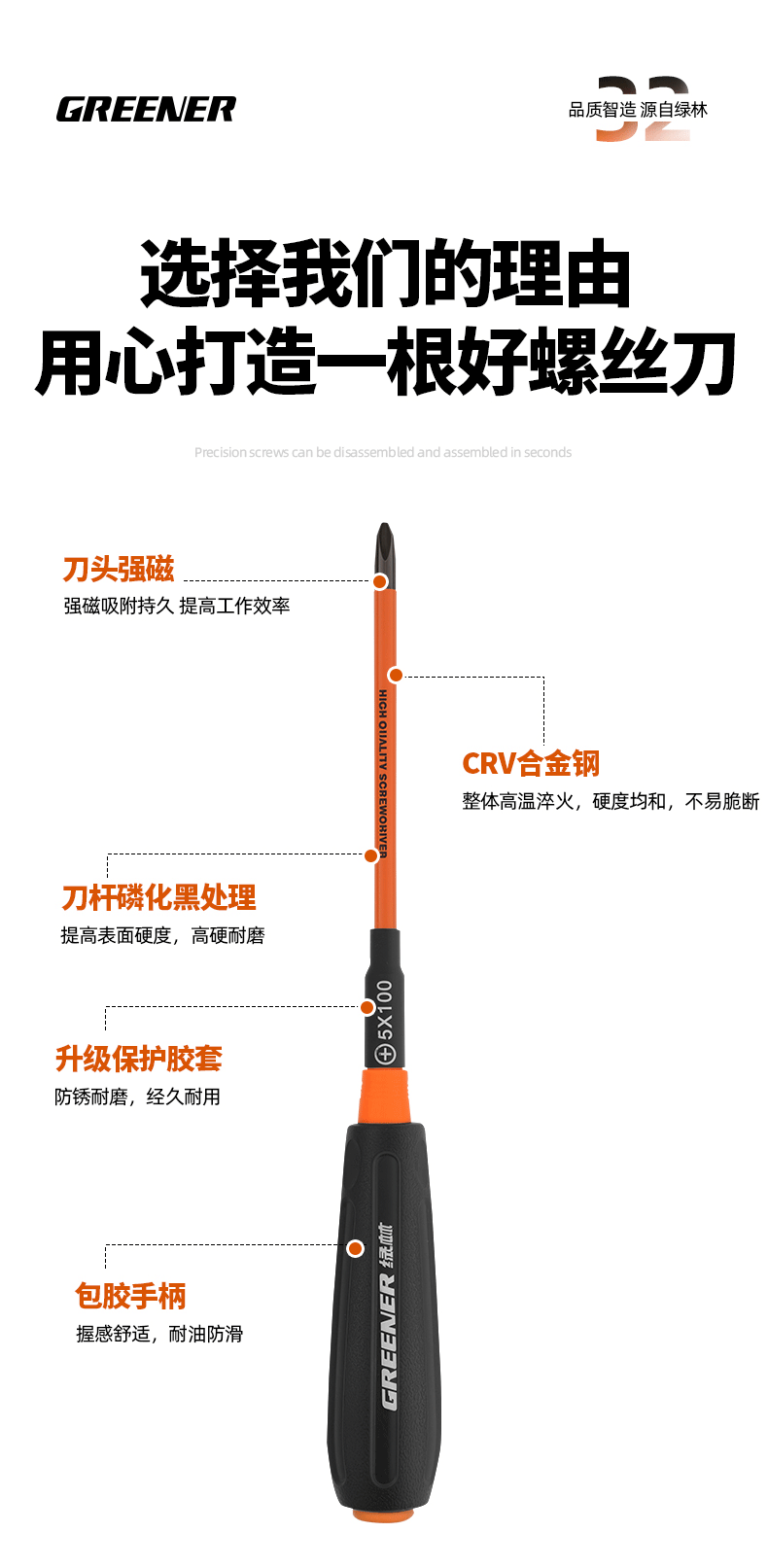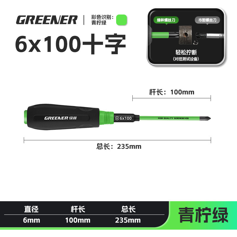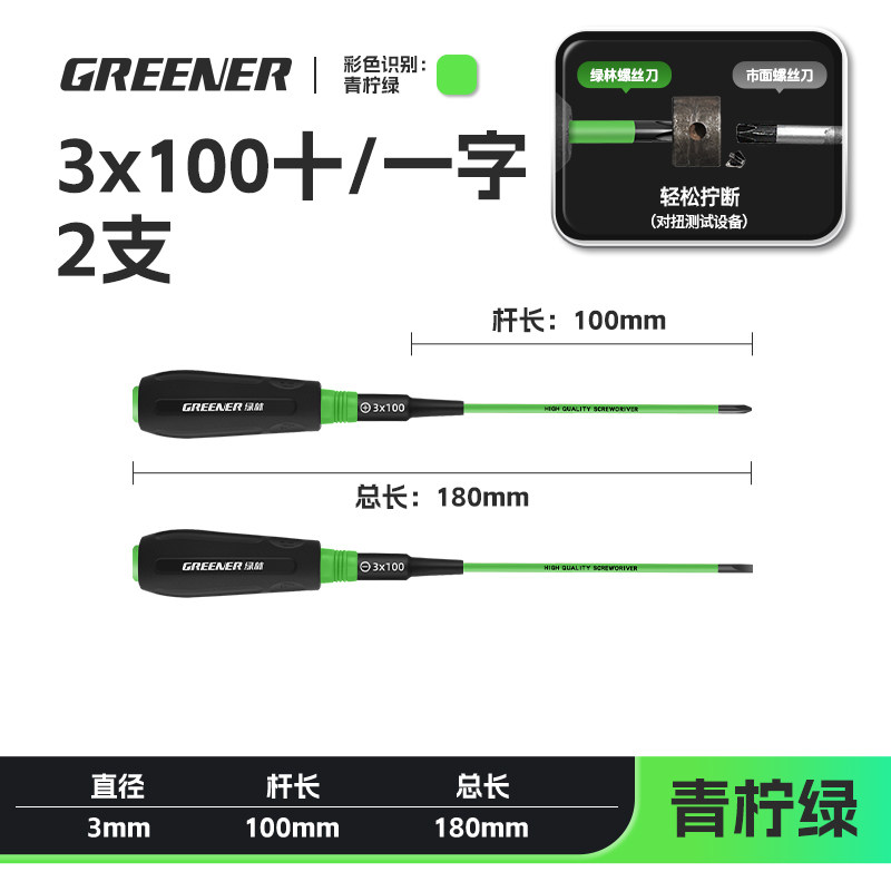 高硬/防锈【3*100】十字(青柠绿)