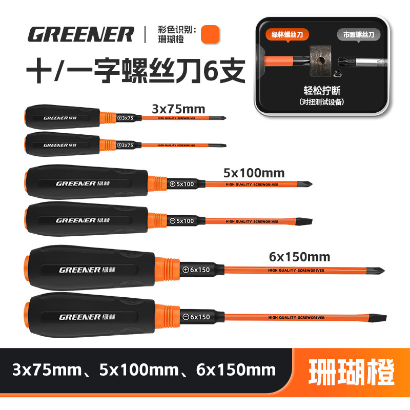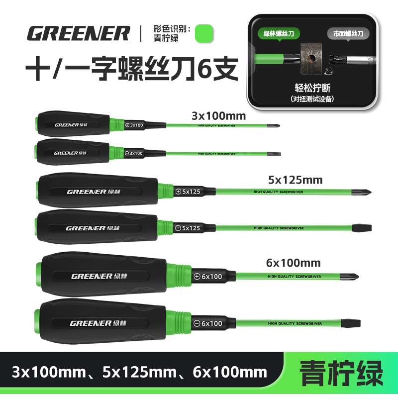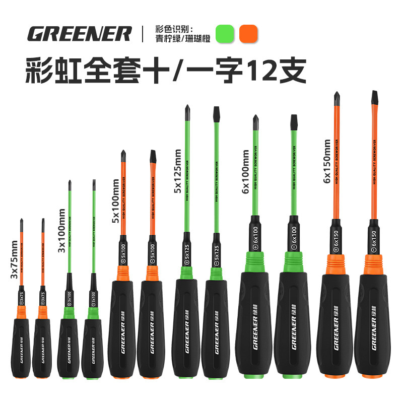 绿林彩虹螺丝刀十字一字强磁高硬度改锥家用梅花平口起子工具套装