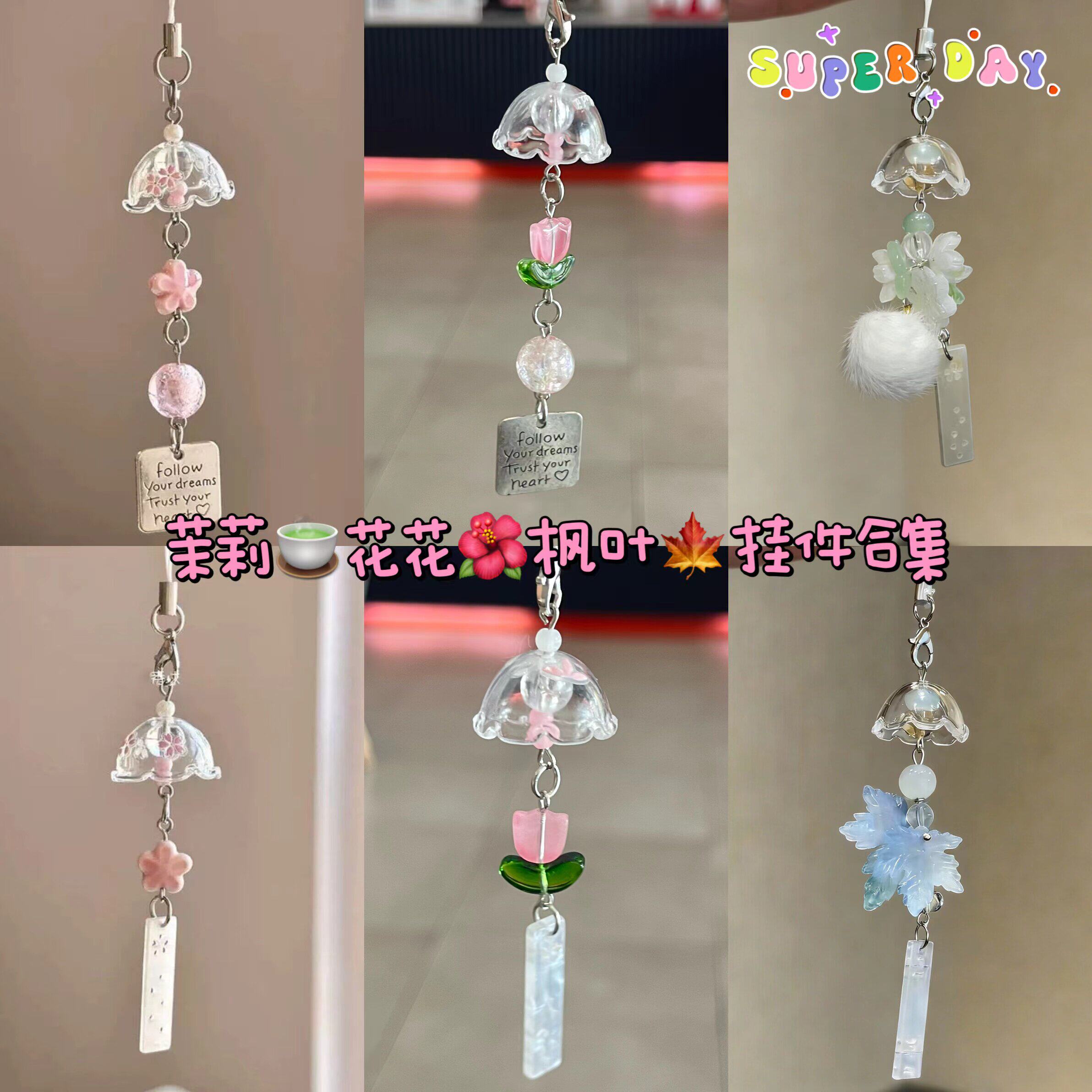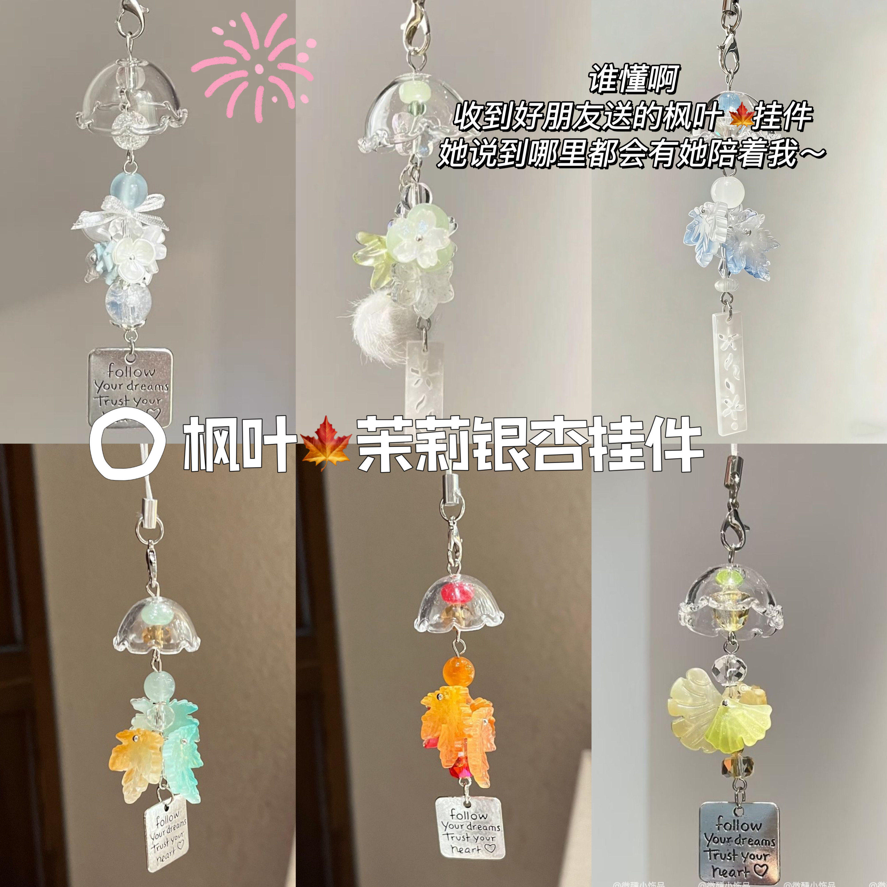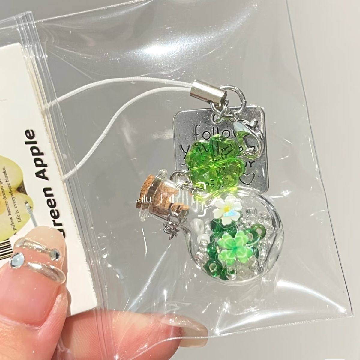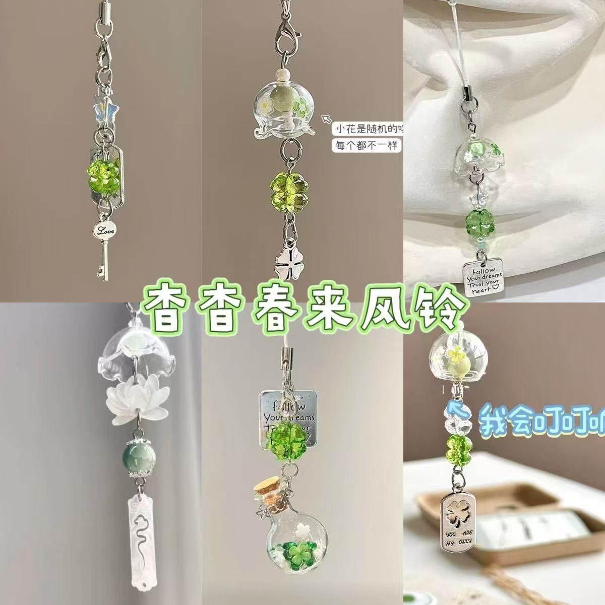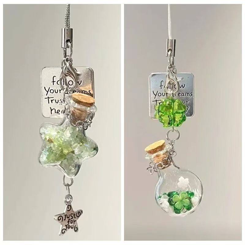 【四叶草许愿瓶风铃】小清新手机链包包挂件相机挂饰钥匙扣礼物女