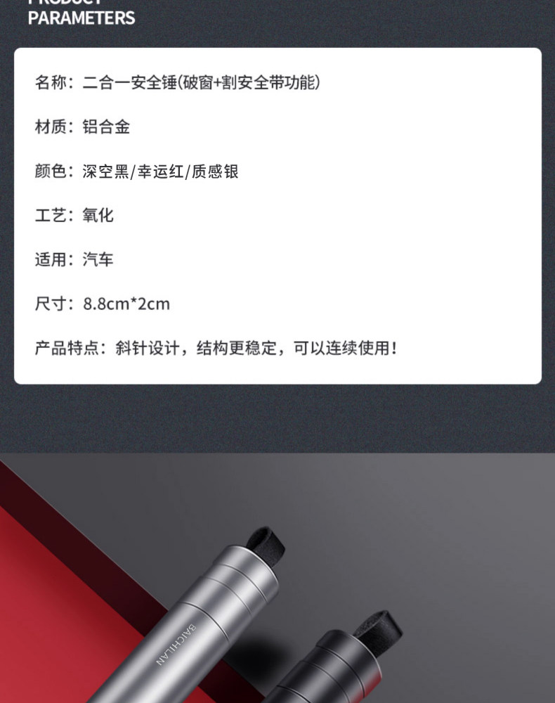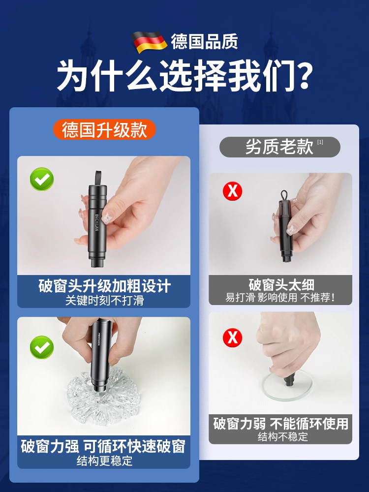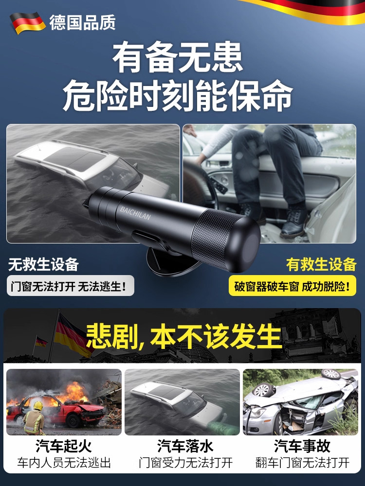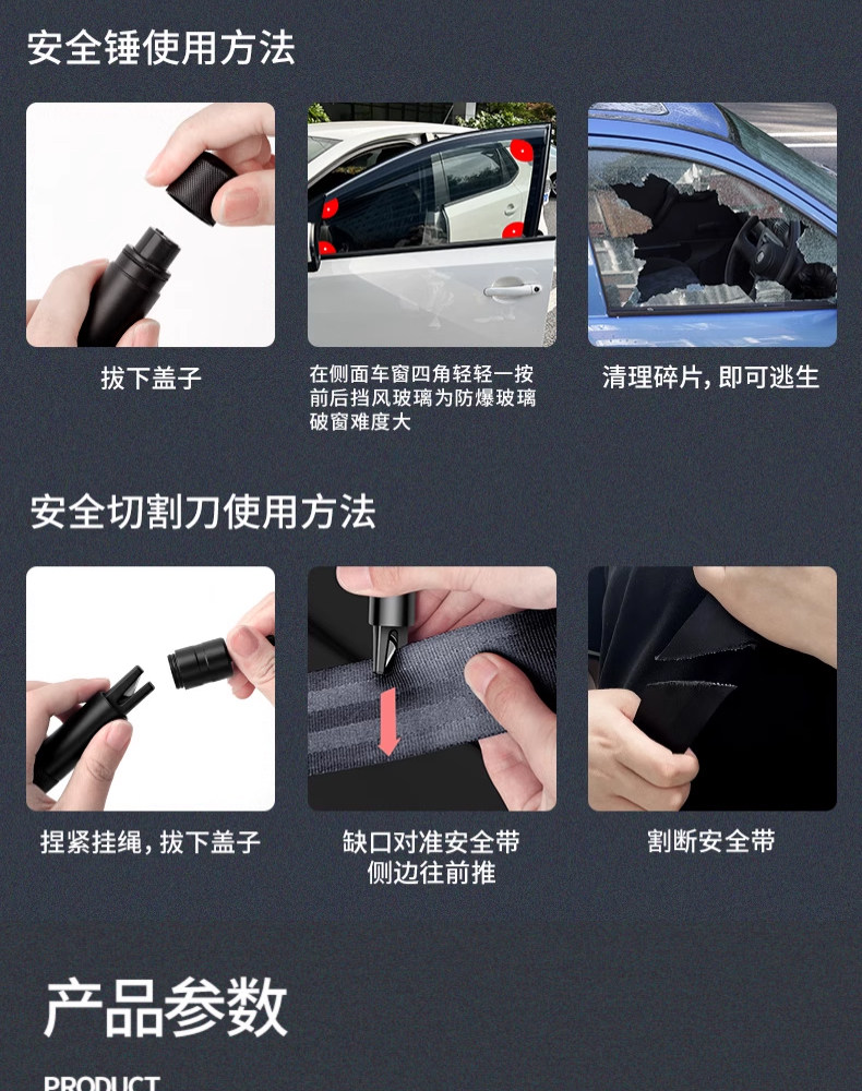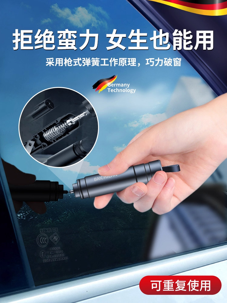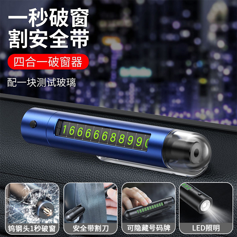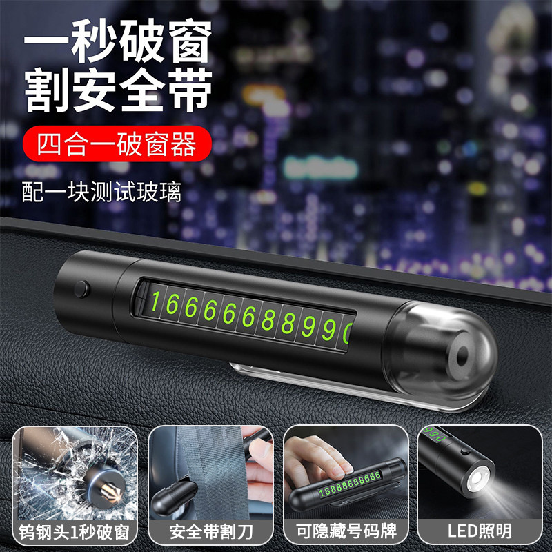 多功能汽车破窗器车载新型玻璃钨钢安全锤车内四合一号码牌带割刀