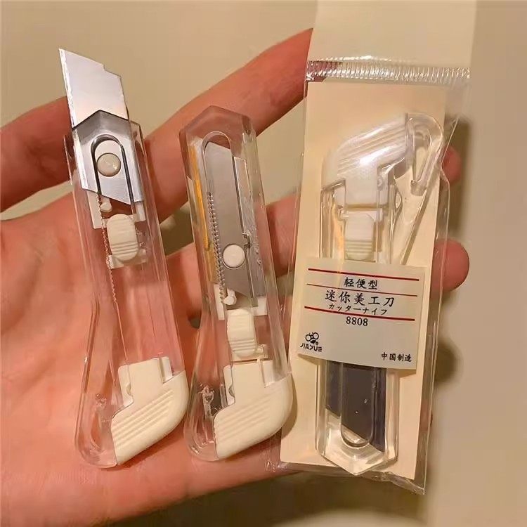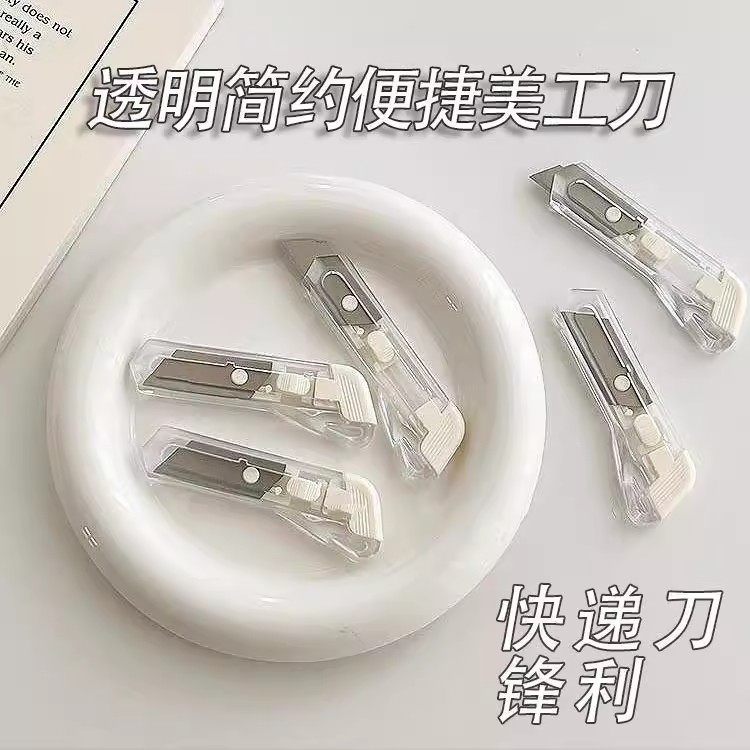 高颜值透明开箱刀简约办公美工裁纸刀迷你便携式拆快递小刀ins风