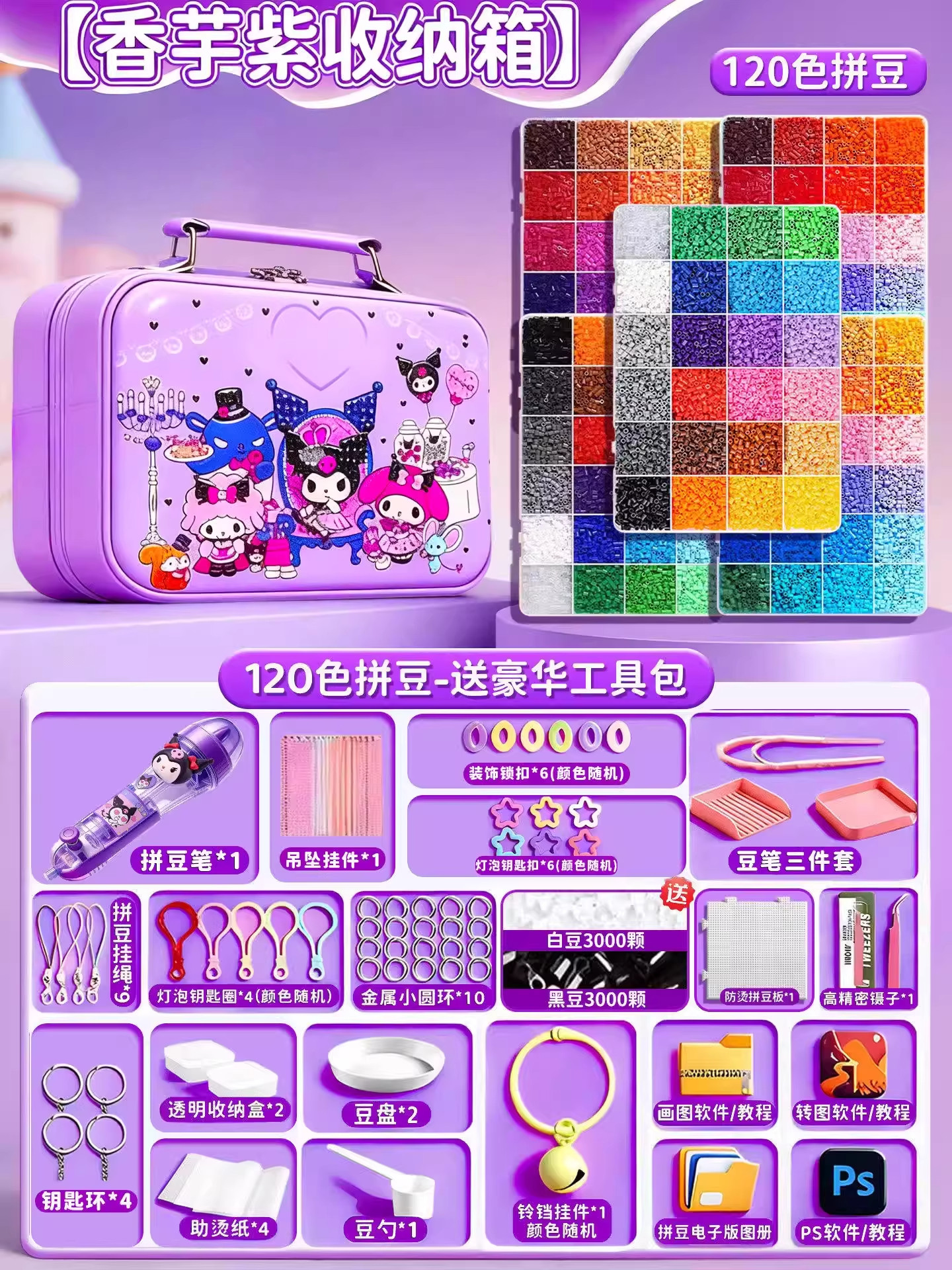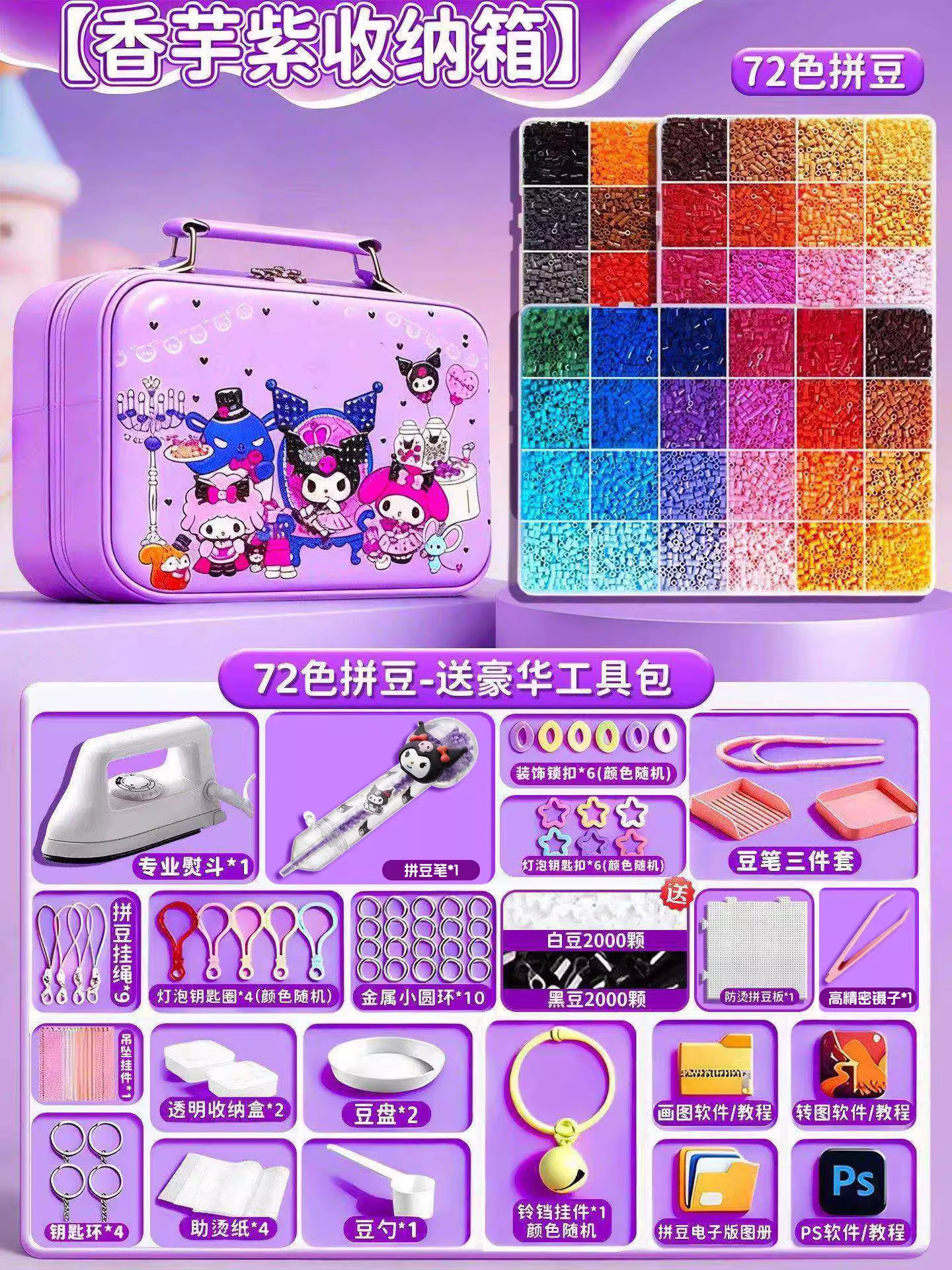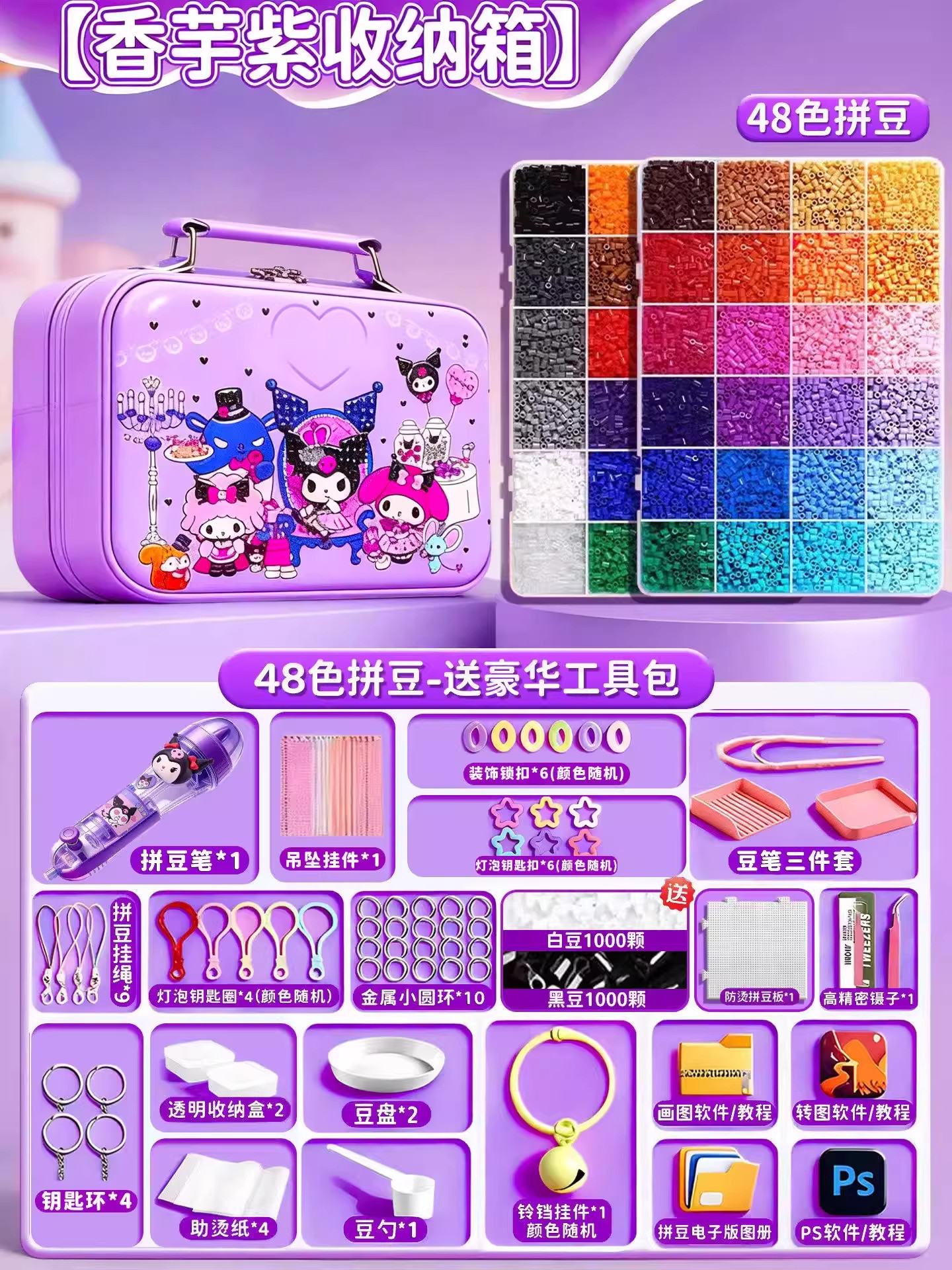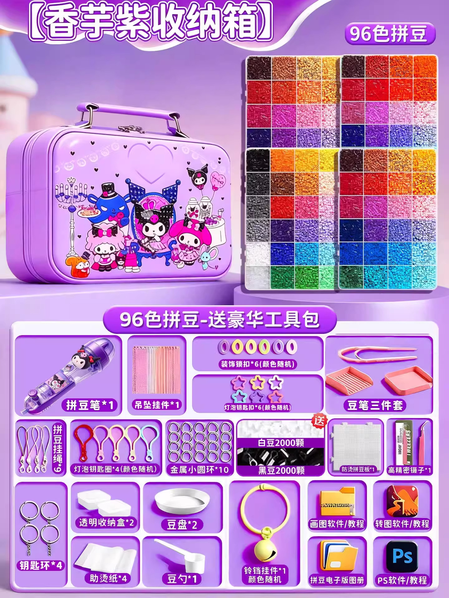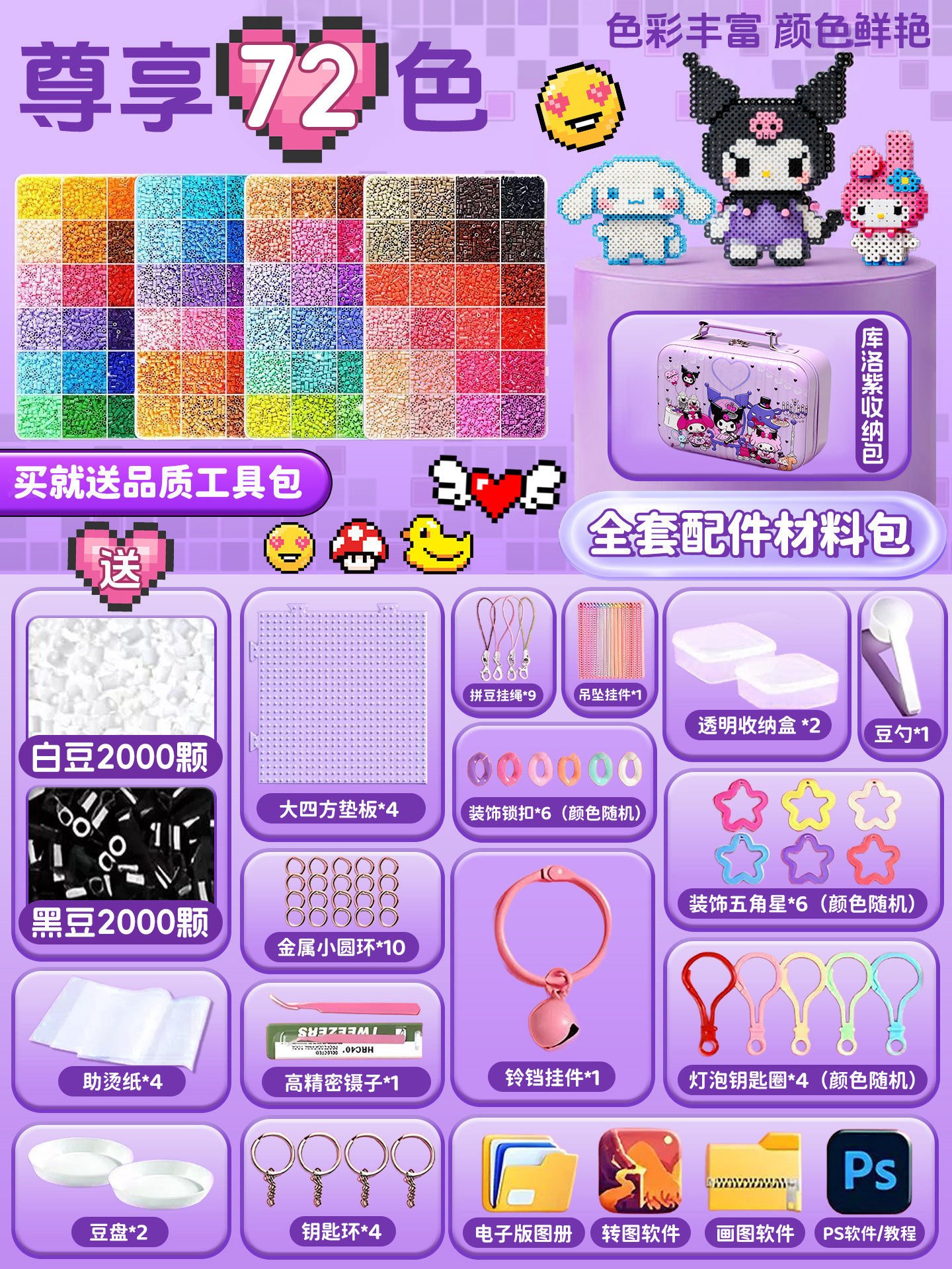 24色⭐【送自动拼豆笔+紫色收纳箱】送豪华工具包+黑白豆2000颗