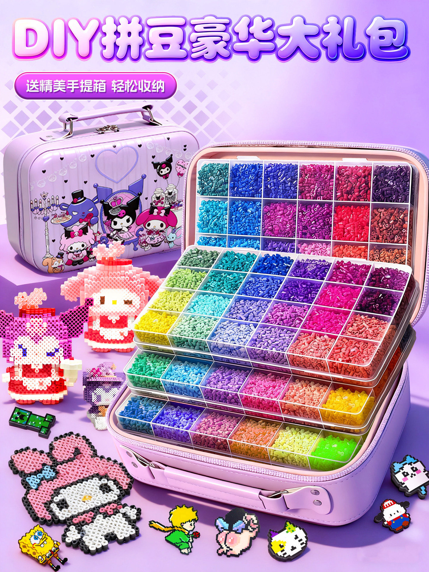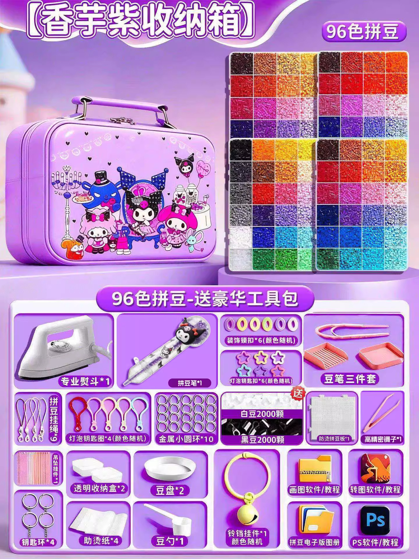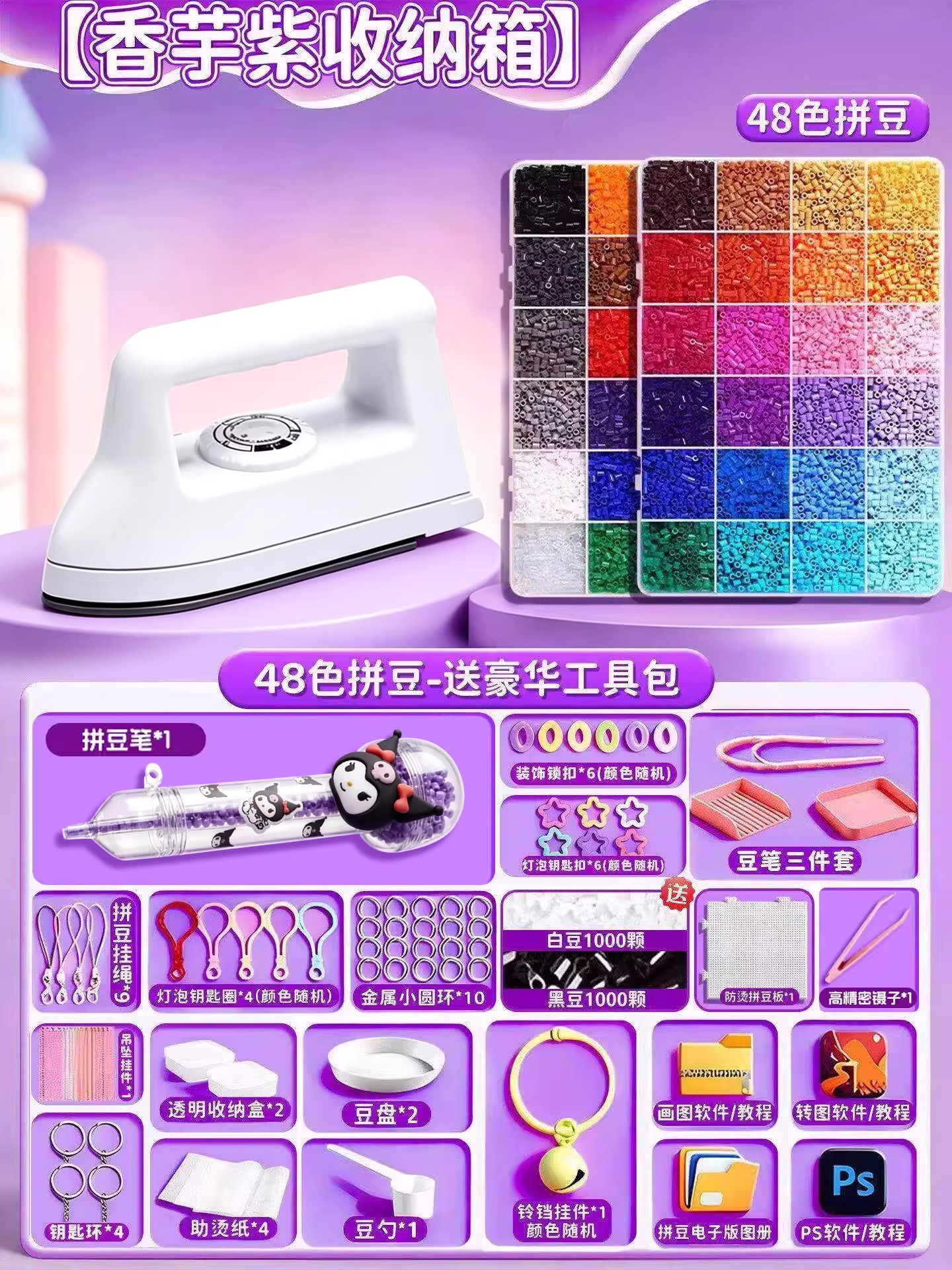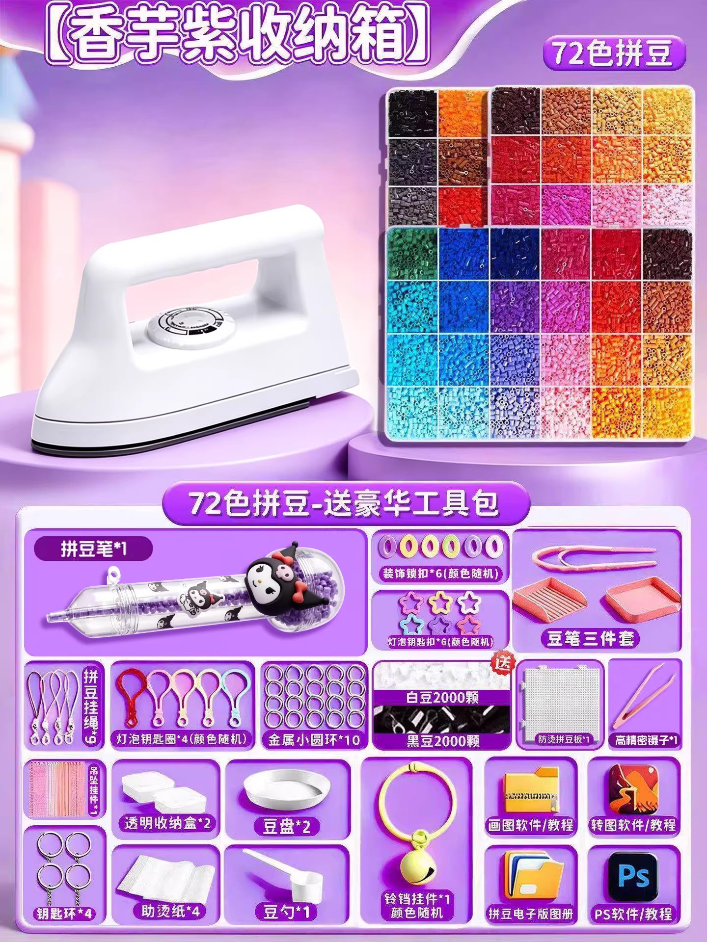 24色⭐【送自动拼豆笔+紫色收纳箱】送豪华工具包+黑白豆2000颗