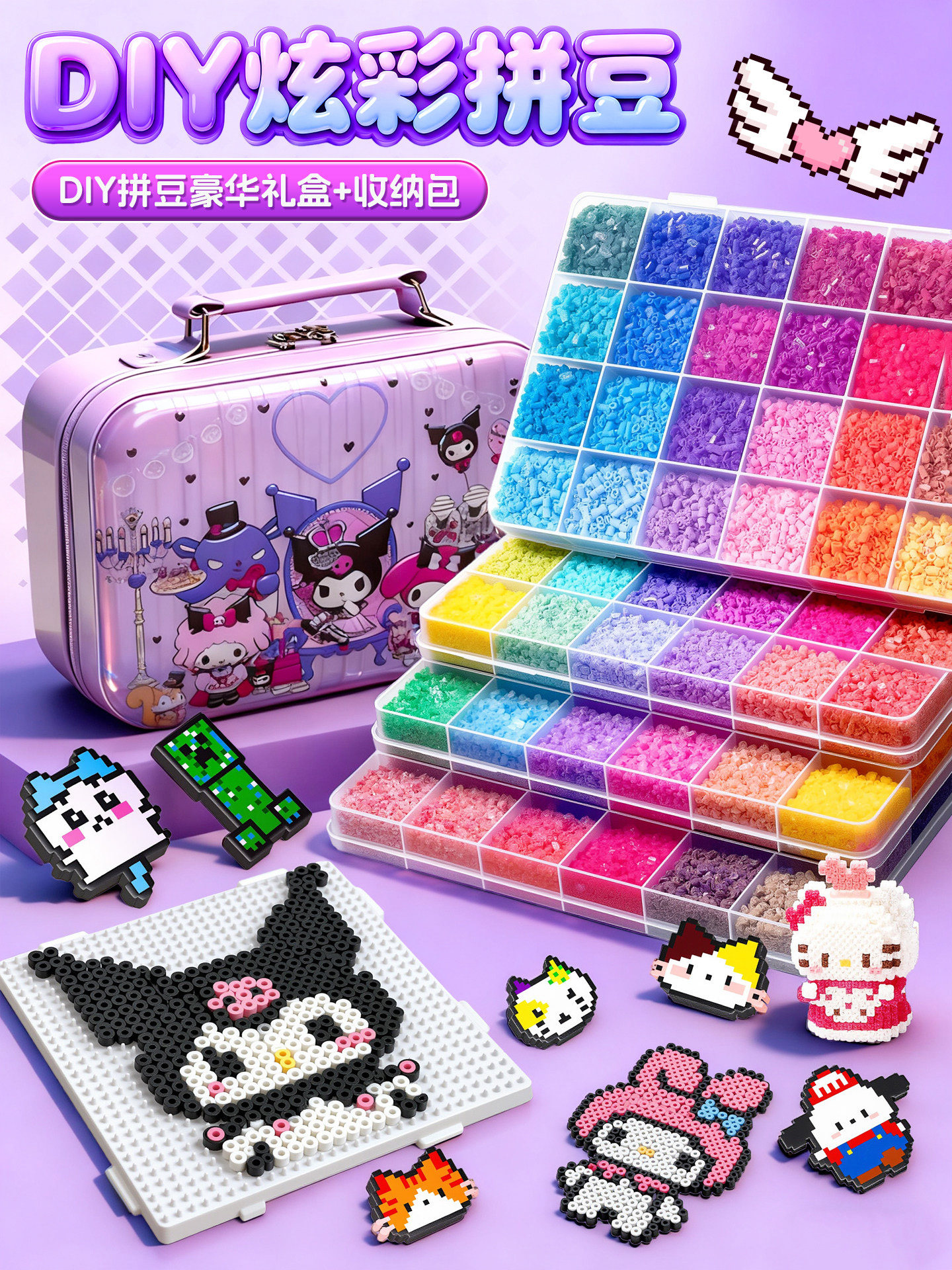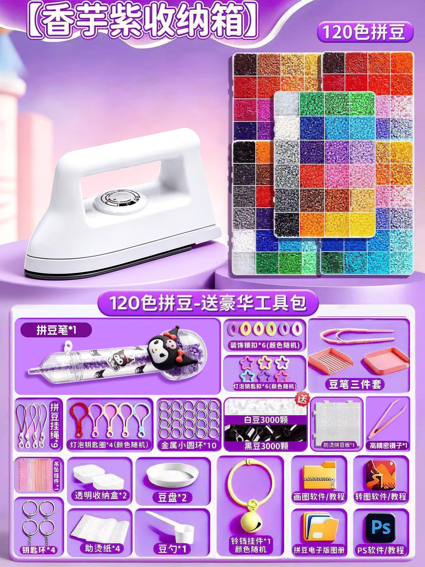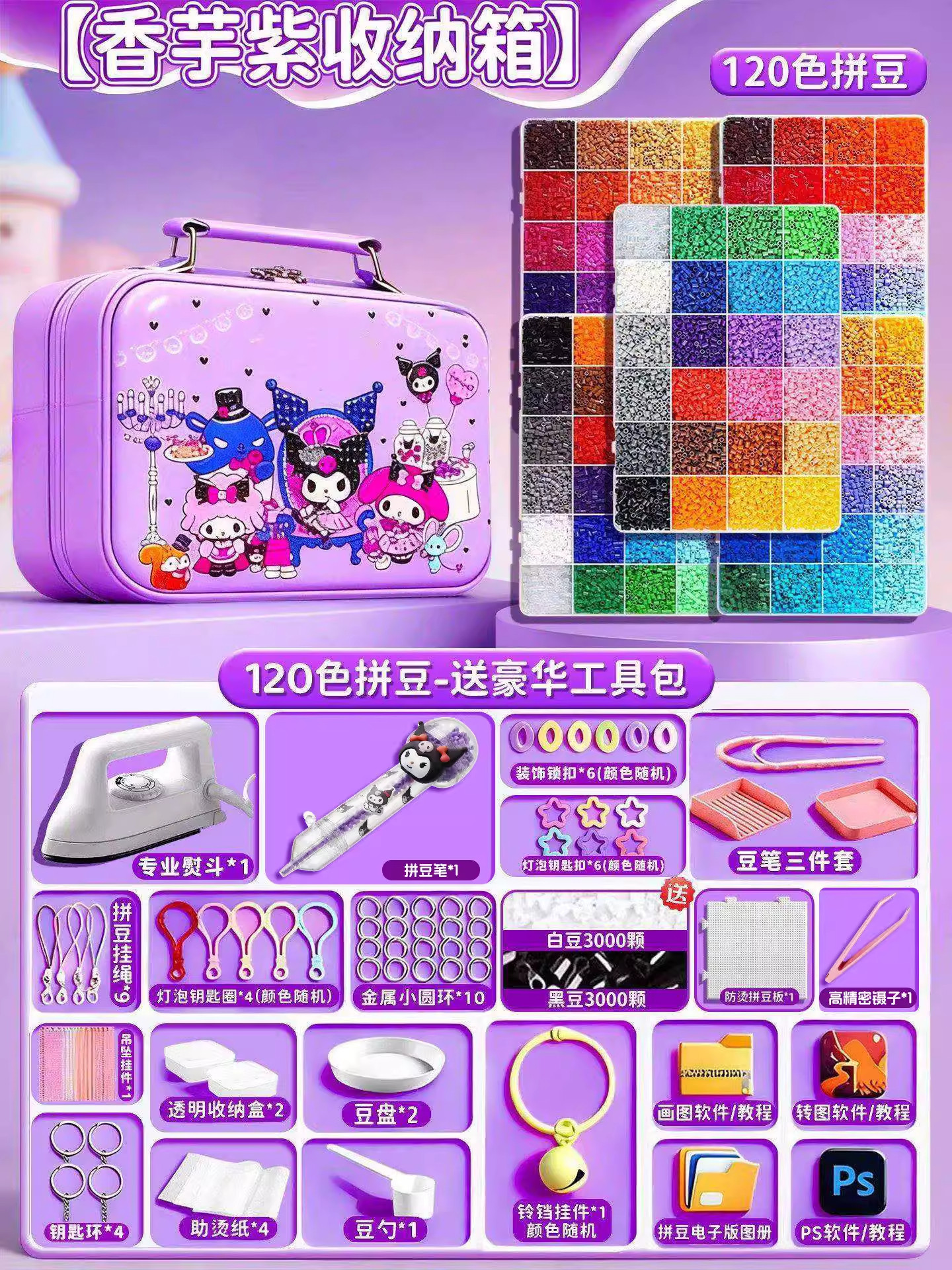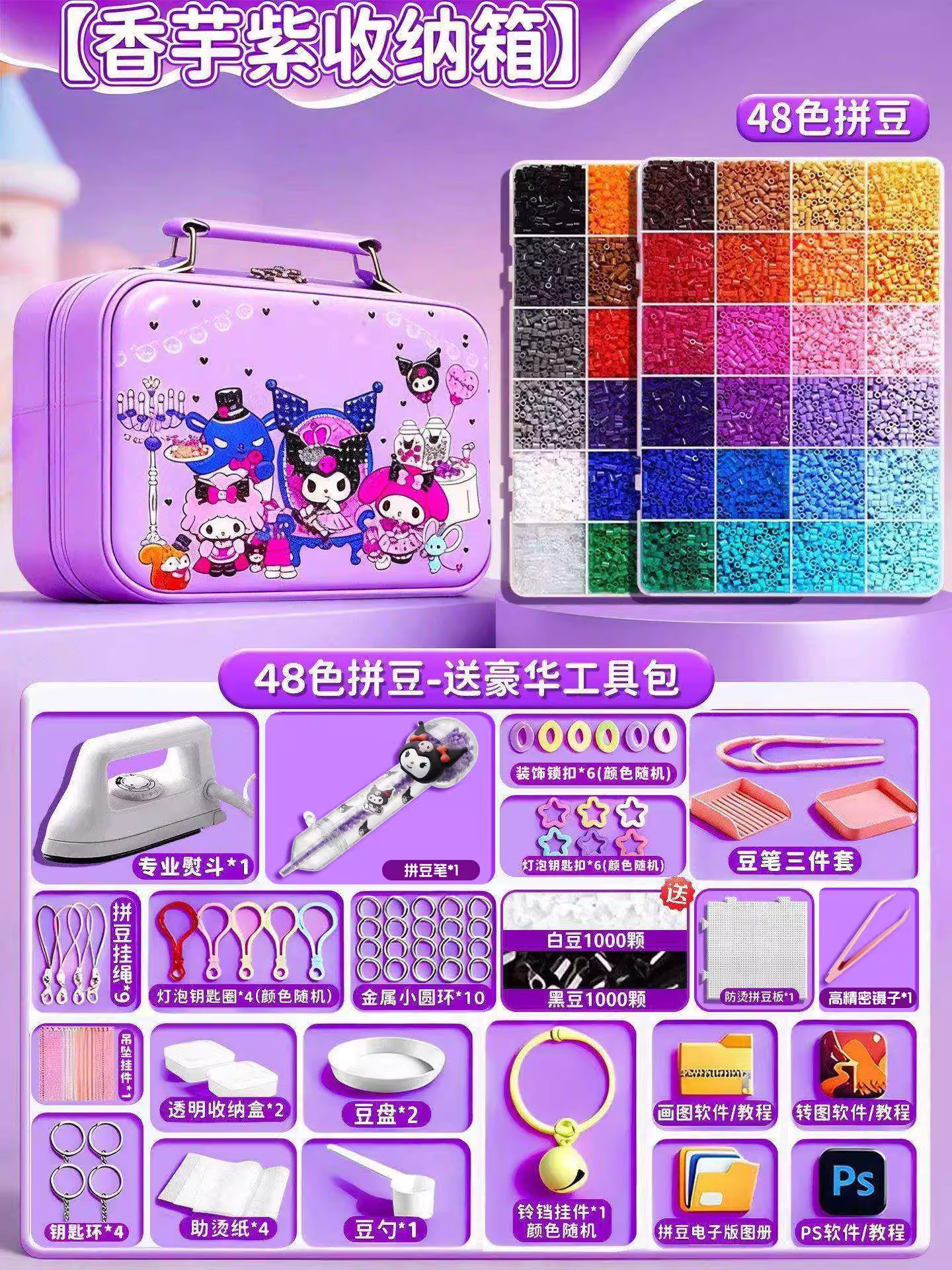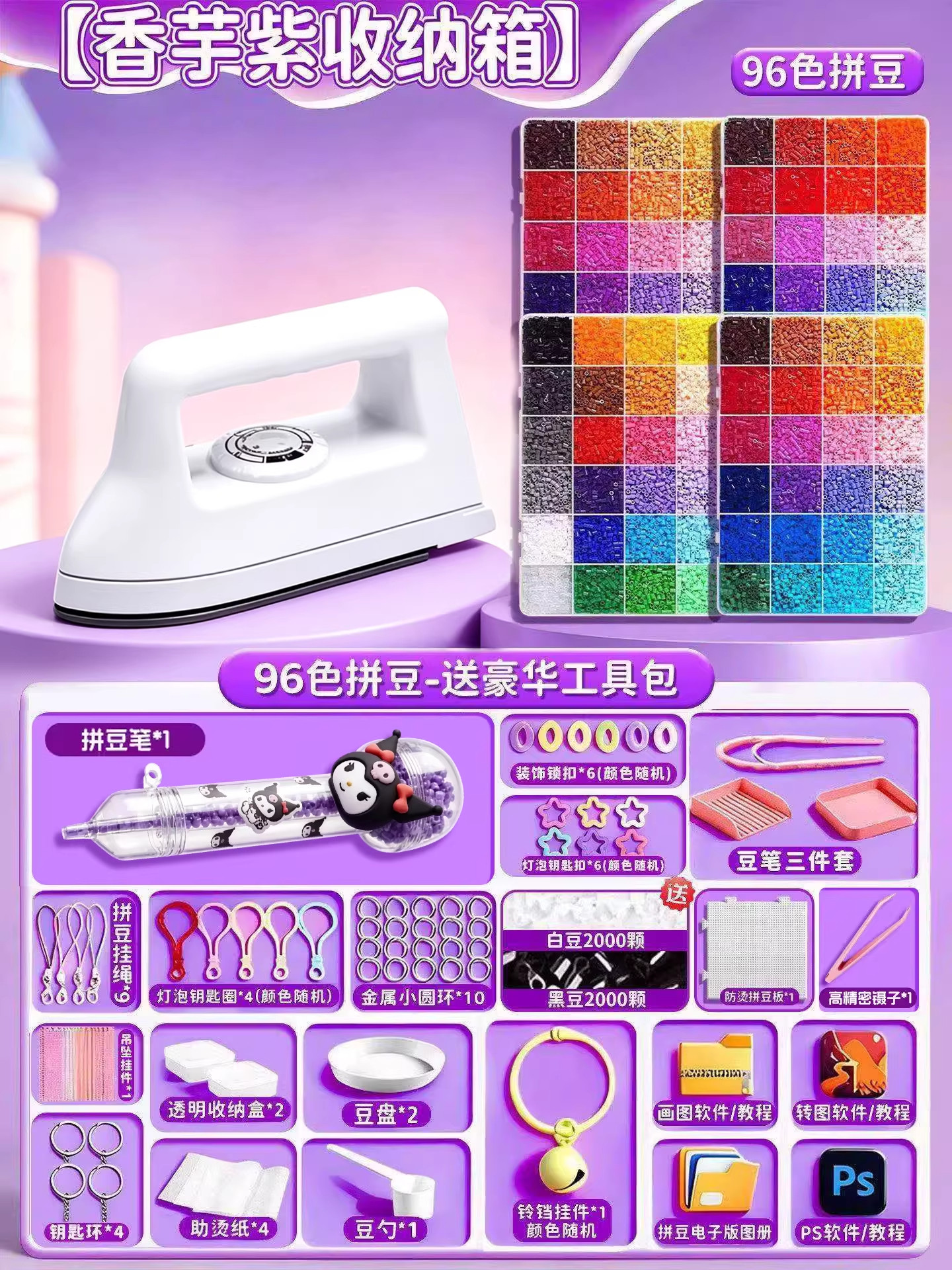 24色⭐【送自动拼豆笔+紫色收纳箱】送豪华工具包+黑白豆2000颗