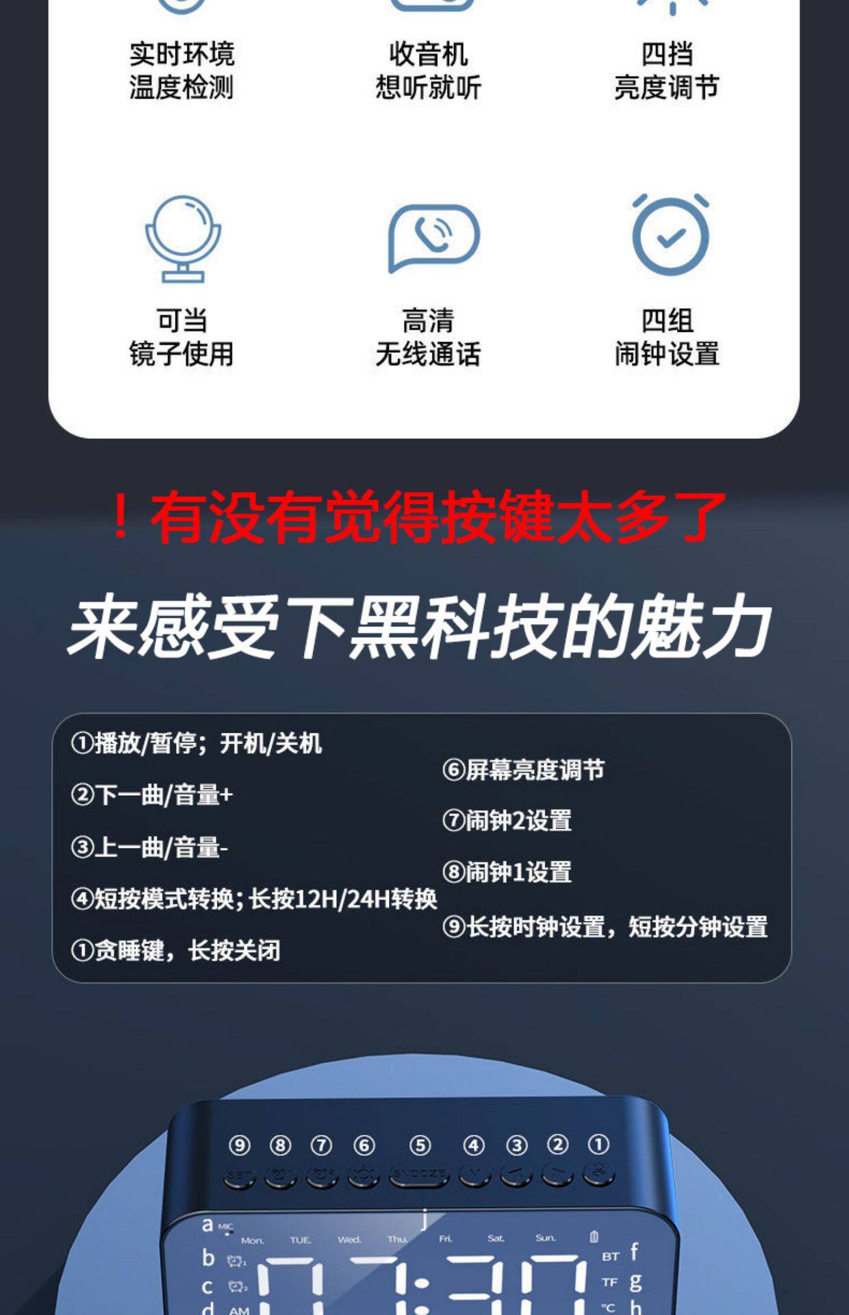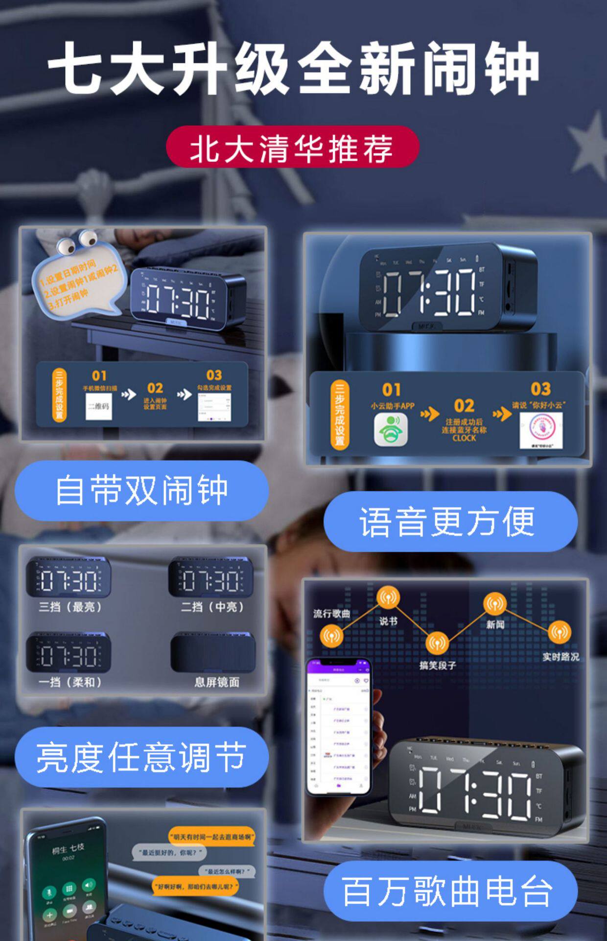 智能蓝牙音响电子多功能时钟学生起床闹钟神器无线小音箱高音质